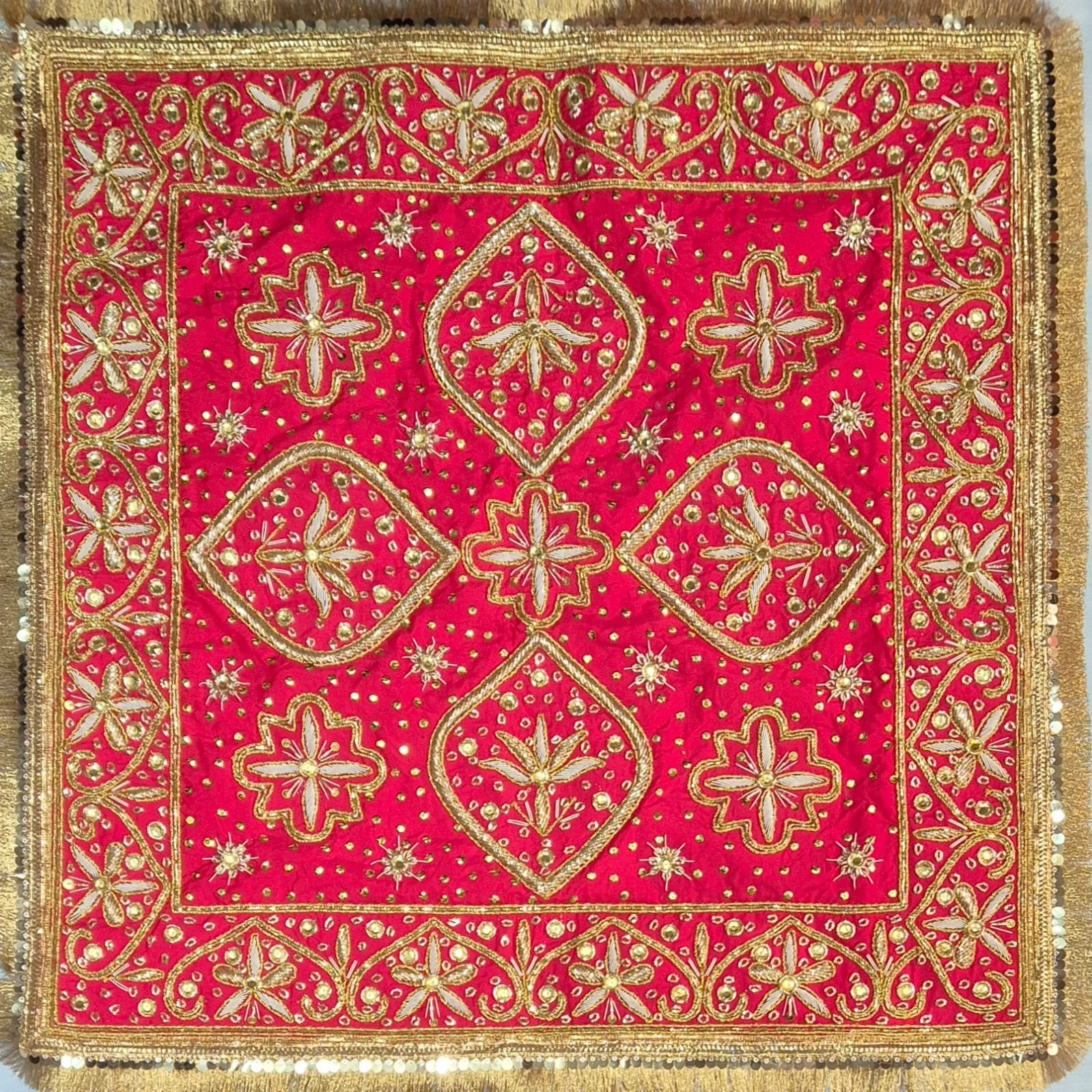 Our Sukhasan Rumala is handcrafted by skilled artisans using premium fabrics, intricate embroidery, and traditional techniques passed down through generations. Every stitch and design is made with care, ensuring that the Rumala not only preserves sanctity but also radiates beauty and devotion.