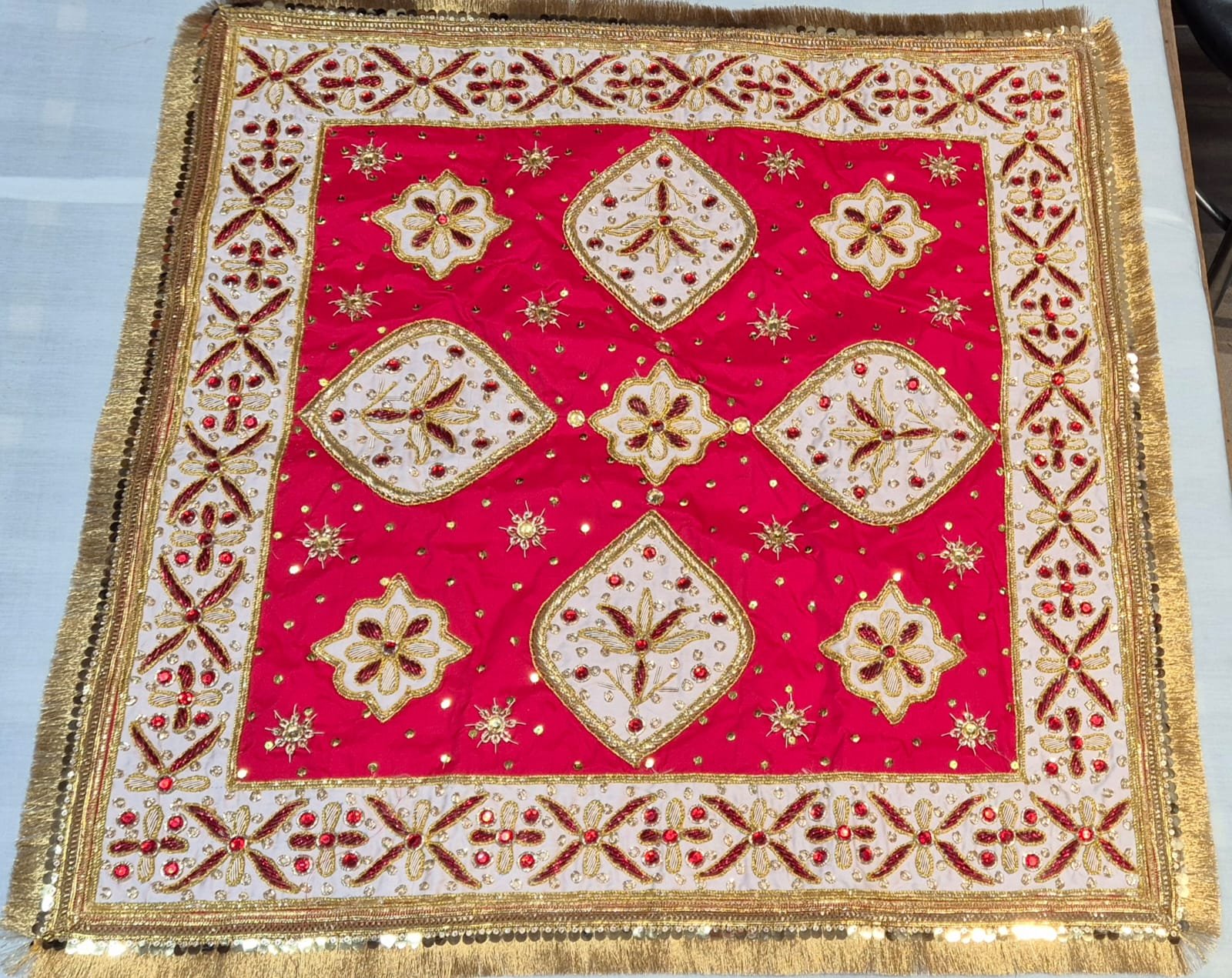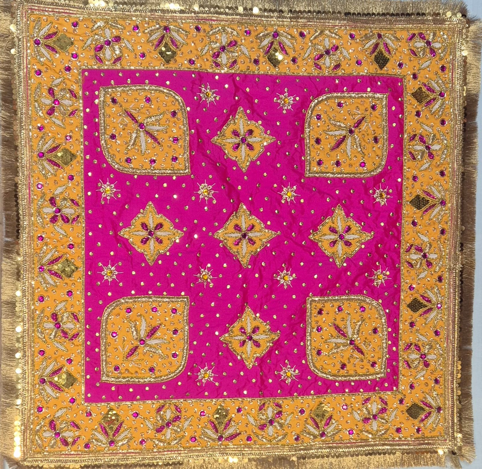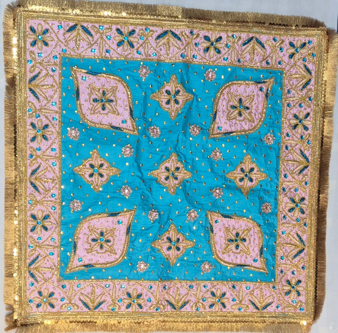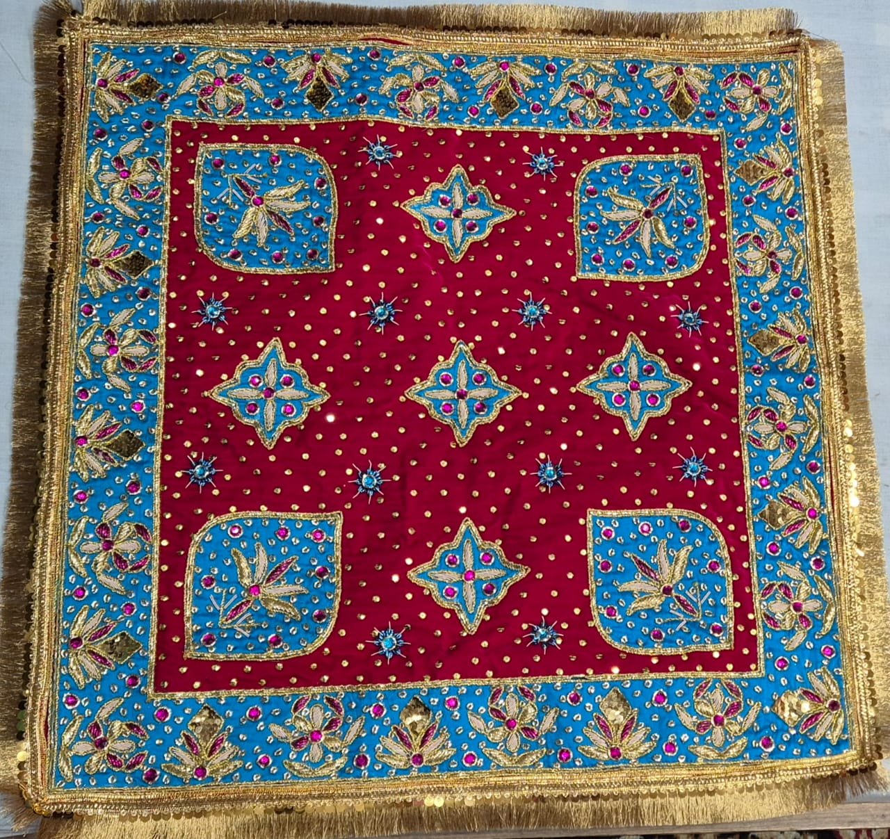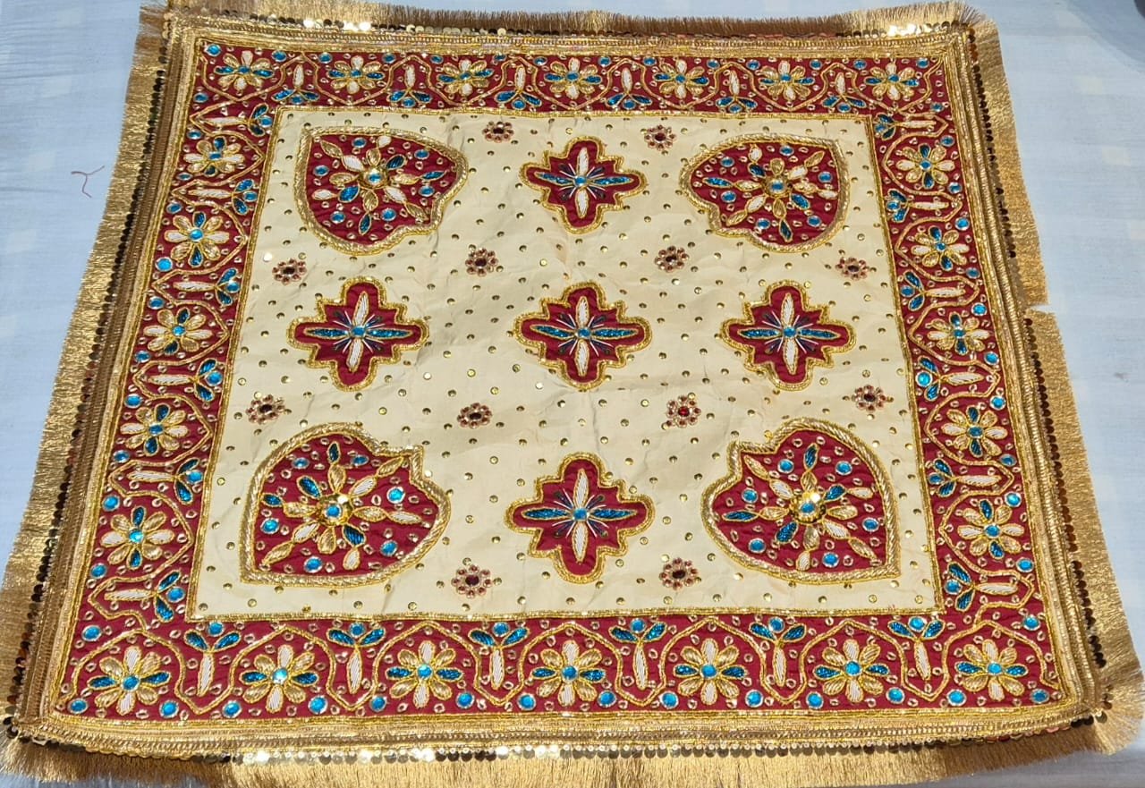 Our Sukhasan Rumala is handcrafted by skilled artisans using premium fabrics, intricate embroidery, and traditional techniques passed down through generations. Every stitch and design is made with care, ensuring that the Rumala not only preserves sanctity but also radiates beauty and devotion.