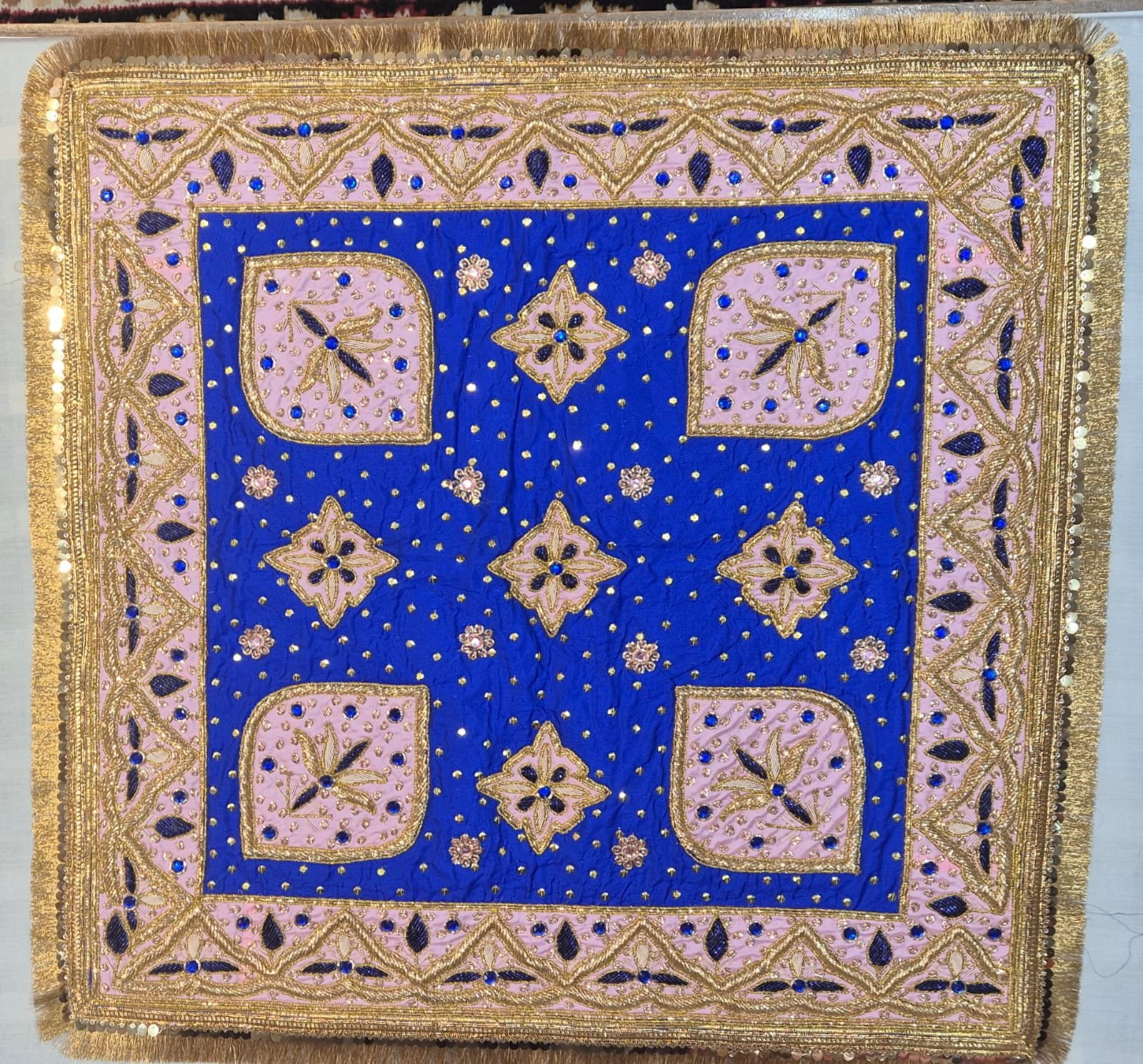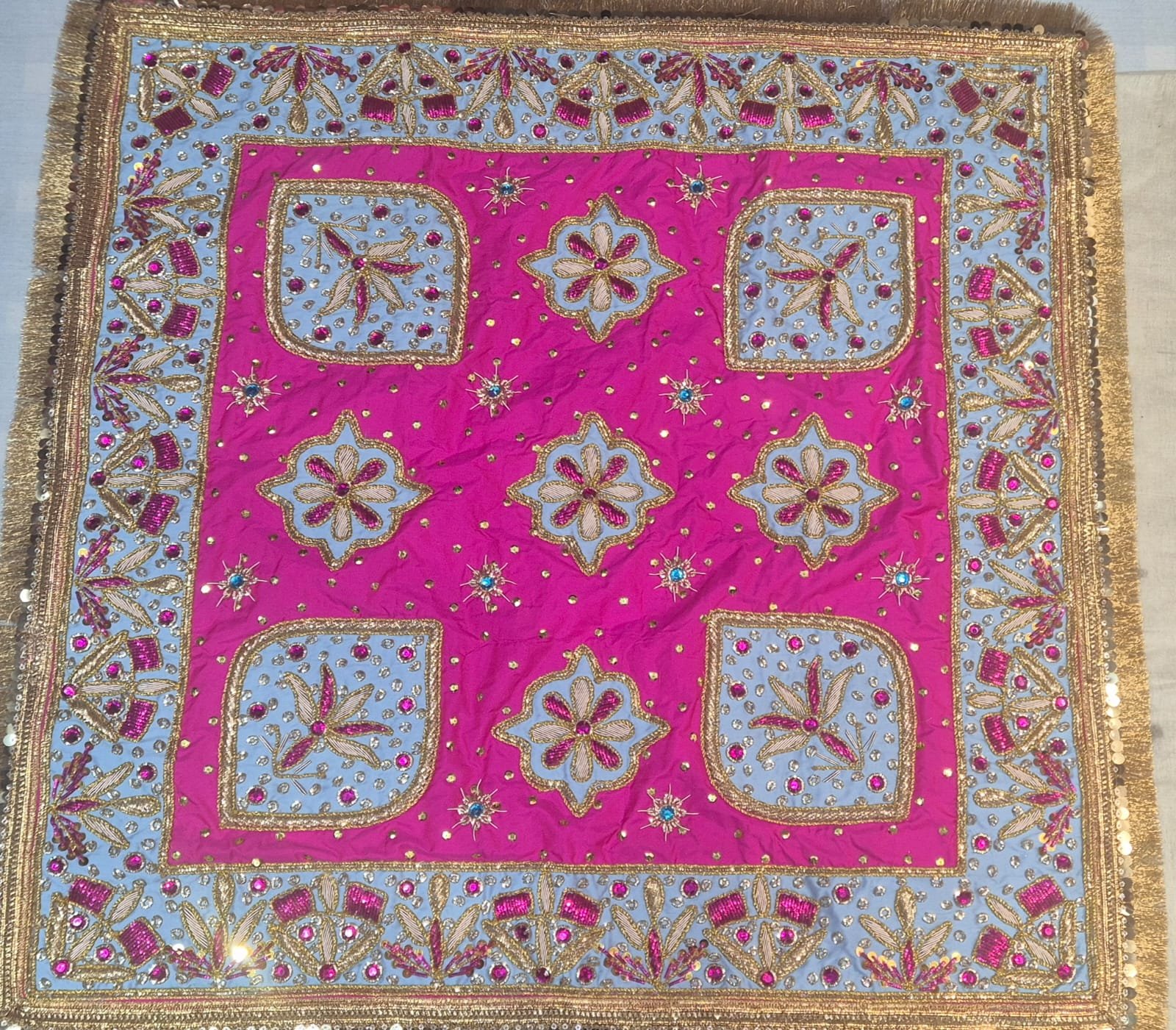 our Sukhasan Rumala is crafted with devotion to honor the sacred tradition of Sukhasan Sahib — the ceremonial resting of Sri Guru Granth Sahib Ji. Each Rumala is designed to enhance the spiritual ambiance of the Guru’s Darbar while reflecting elegance, respect, and deep reverence.